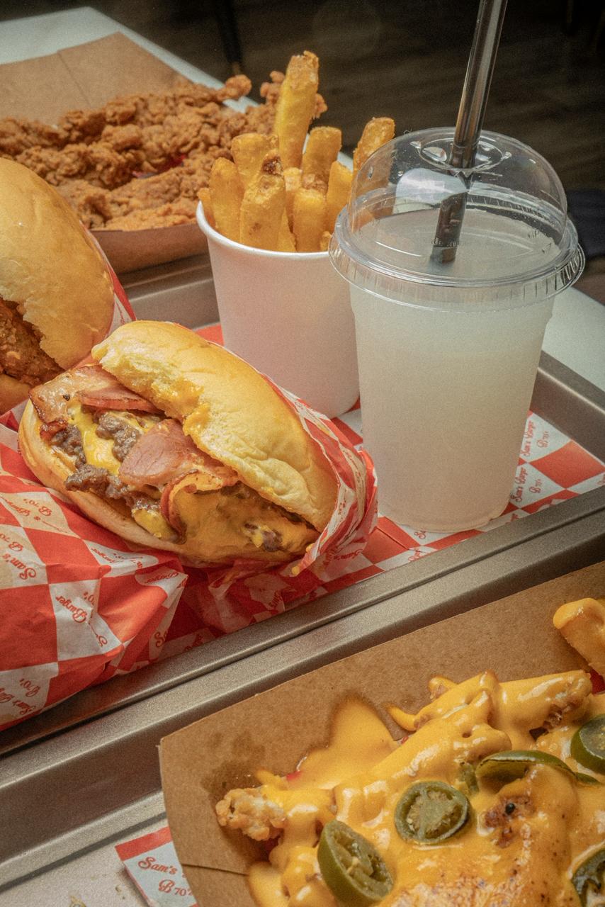 Sam’ s Burgers B70’s takes you back to the 70’s era brings those scrumptious, delicious, smashed beef burgers, sizzling with melting cheese cooked.